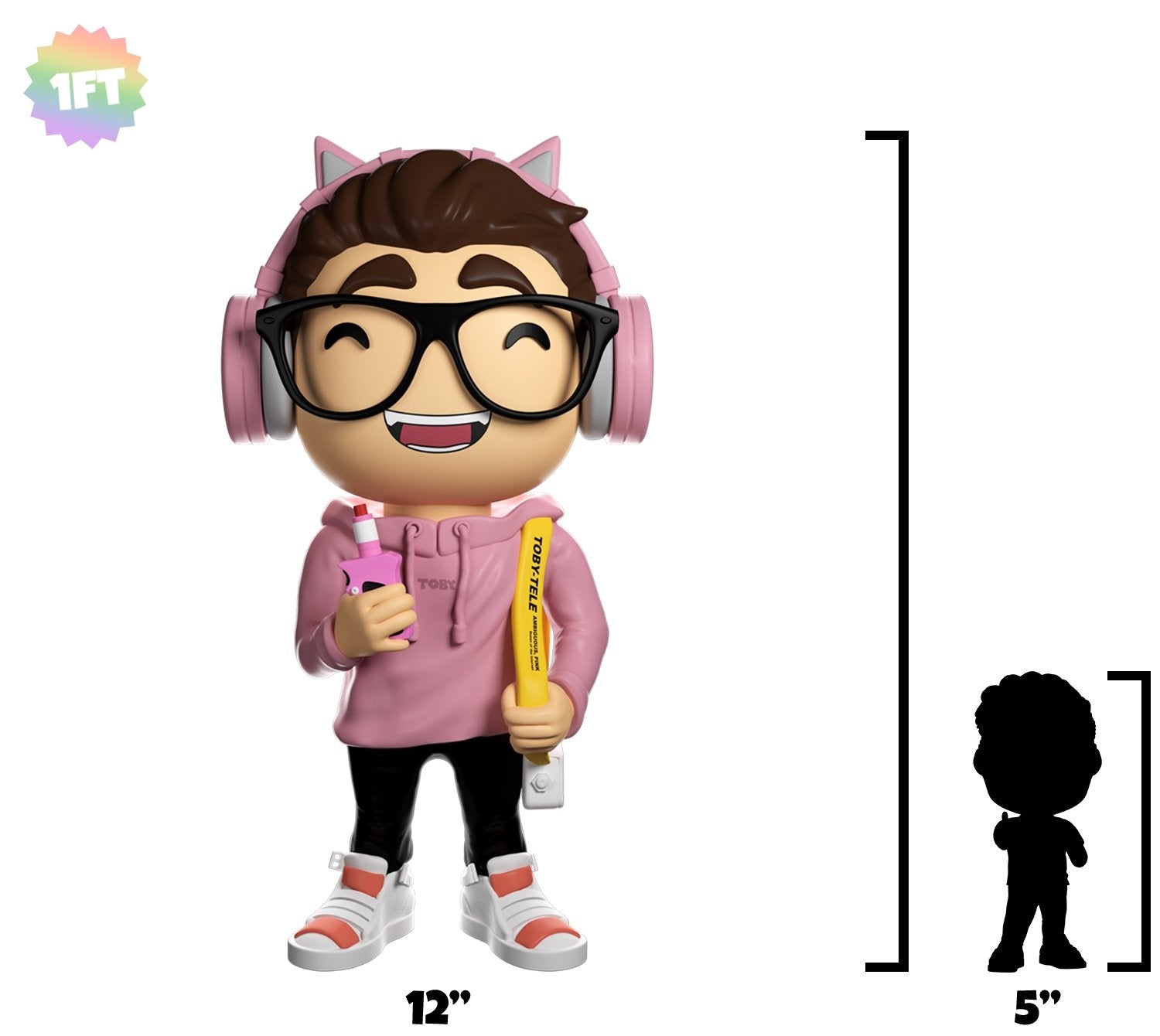 One of the most hype Season 1 Youtooz released, Toby's anniversary edition collectible arrives in a 12 inch format. Sculpted out of high quality material, this art piece is a limited run of a scaled up version of Toby's first release. In it Toby wears a pink hoodie stamped with her name, holds a pink vape in one hand and a designer handbag in the other which bears a custom yellow strap with Toby on the Tele branding. On the head are custom white and pink headphones which compliment Toby's cheerful expression. The figure ships in a custom built display box featuring hinge action. The box includes a custom scene inside Toby's bedroom and protective foam on the interior designed in collaboration with @UpgradedTrash_.